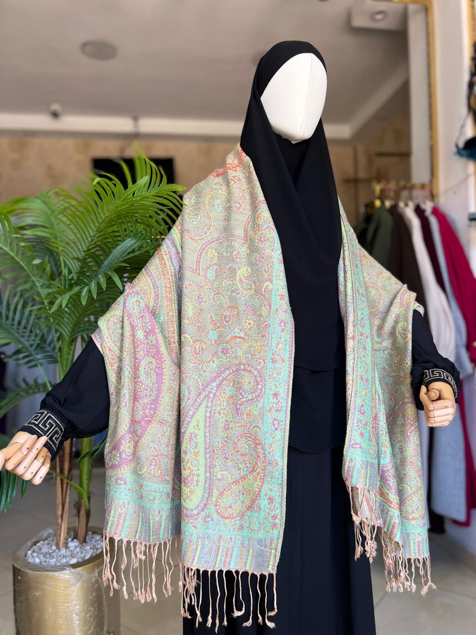 هذا الحجاب الباشمينا يجمع بين الحجاب والوشاح في قطعة واحدة عملية وأنيقة. مصنوع من خامة ناعمة وانسيابية تمنح جمالًا في الارتداء وتغطية ممتازة.